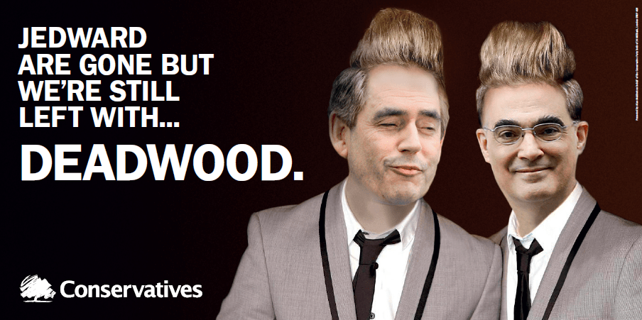 Following last night’s X-Factor results show, in which Jedward were voted off the programme, The Conservative Party have released the above poster as a repost to the recent Labour Party attack advert. Very funny and, more importantly, very timely.