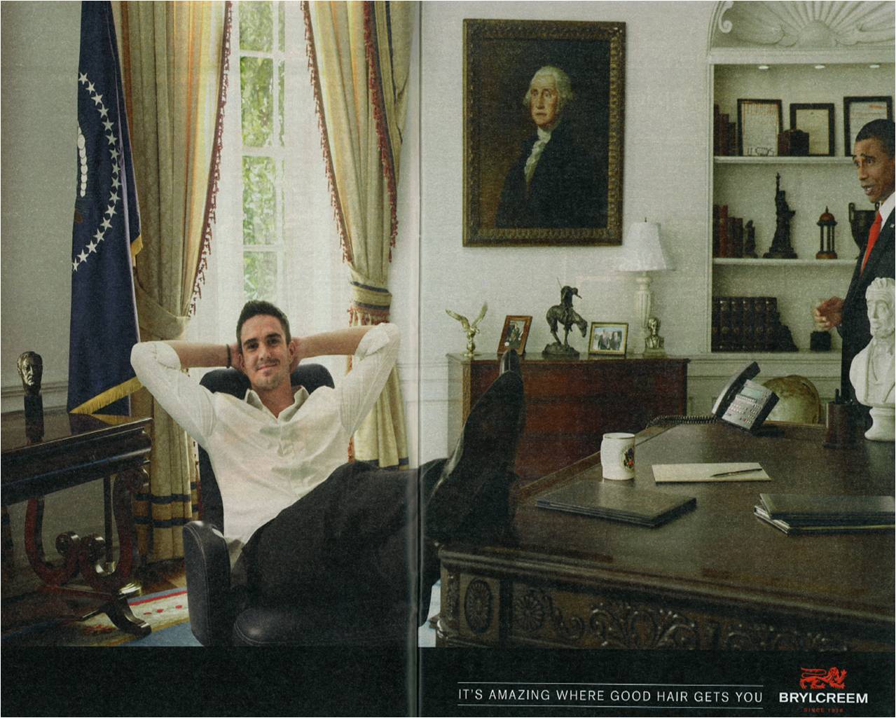 Another example of a brand trying to use Obama’s capital, just over a year since his election. Although I’d be amazed if people can see past Kevin Pietersen’s smug face to notice that he’s meant to sat in the Oval Office and Barack is slightly miffed at having someone ruin his butt groove.