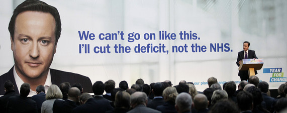 Given the topic of the poster the shot selected of Cameron is a good one: serious, confident and yet still approachable. However, the headline is overly wordy. It seems as if there has been a battle over what the key message for the poster should be – (a) We can’t go on like this, or (b) I’ll cut the deficit not the NHS. Both are strong on their own, but the combination of the two seems like a bit of a fudge and the impact of the headline is slightly lost.