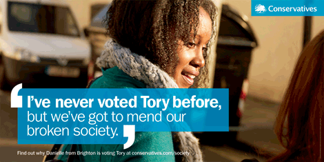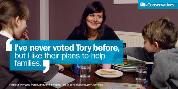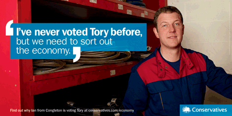 The Conservative Party have released 3 new posters, carrying the headline ‘I’ve Never Voted Tory before’. The aim for this set of adverts is clear (indeed they’ve essentially written the brief as the headline): to get people who’ve never voted Conservative to reconsider their previous preference.