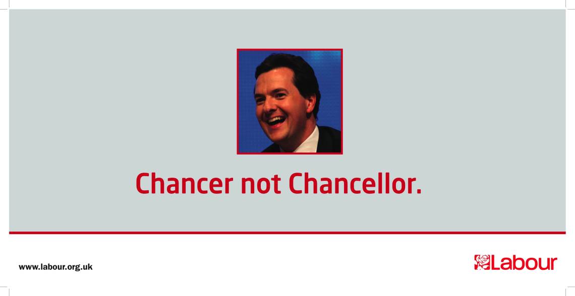 The art direction is terrible. Is that the best photograph they could find for Osborne? Was there no time to cut him and place on another background so that the textured blue didn’t contrast so appallingly badly with the flat grey / red / black colour scheme of the rest of the poster? The use of a square box to contain Osborne’s face within the centre of the rectangular poster is also visually jarring. The whole thing looks like something I could have done on PowerPoint in about 5 minutes.