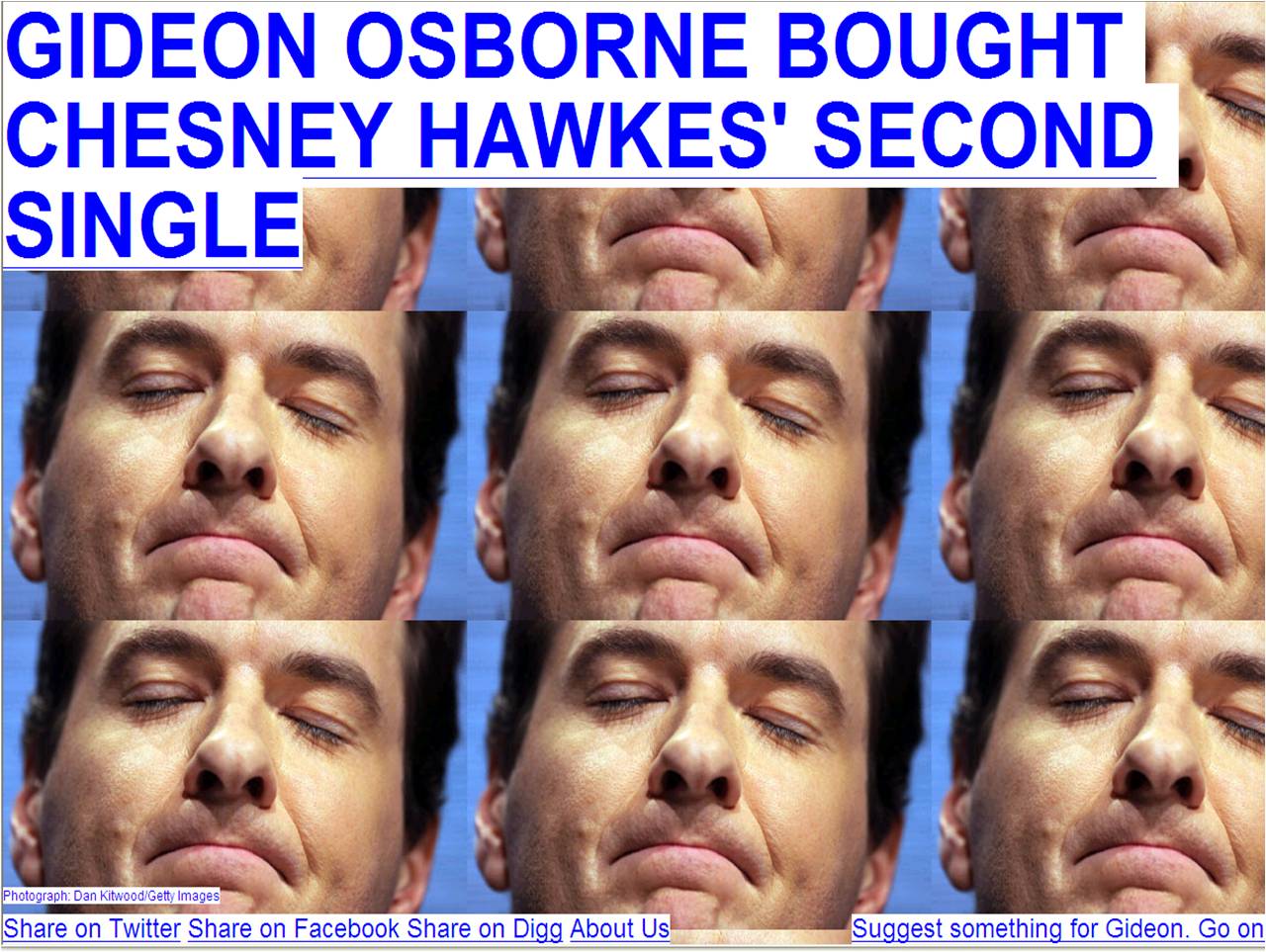Two admen have created a new grass-roots communications project called Powerpoint for Labour. Gideonosborne.com – screen grab above – is their first offering. It features a tiled photo of George Osborne looking pensive, users are invited to email suggestions to what he might be thinking / saying / doing. I really like the ‘low-fi’ style of the website and the simplicity of the attack makes it all the more brutal. Looking forward to seeing more of their work!