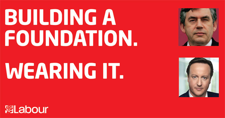 Saatchi & Saatchi, Labour’s ad agency, have provided their supporters with two different briefs to highlight the sort of material they are looking for: 1) Labour’s pledge to protect frontline services and 2) David Cameron’s lack of substance. The ad agency’s attempt at inspiration is above.