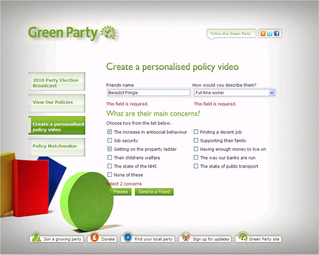 They’ve included a functionality on their website which enables people to choose policy issues which they think will be salient with their friends and then forward on a personalised, edited version of the film. Pretty cool.