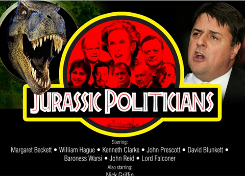 The film poster-style advert portrays supporters of the current first-past-the-post system as political dinosaurs.