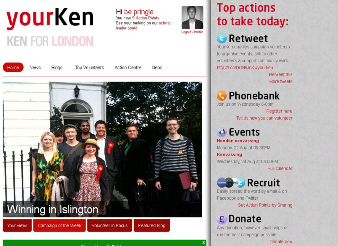 Yesterday the Ken Livingston for London Mayor campaign launched a social campaigning hub.