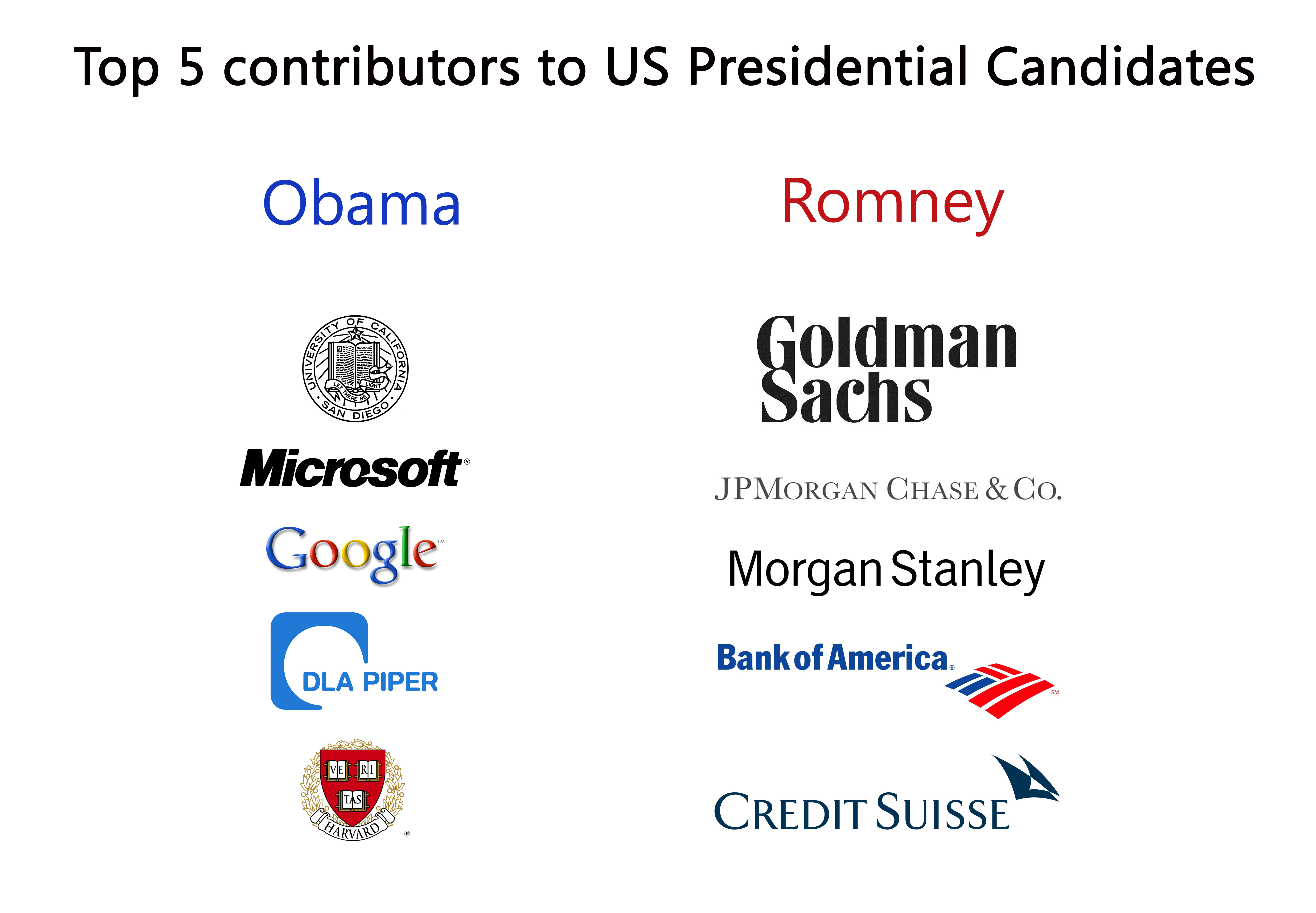 Here’s the organisations that are pouring money into the multi-million dollar advertising campaigns that Obama and Romney are running respectively.