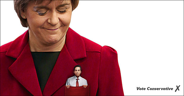 The Conservative Party have released a new poster which features Ed Miliband sitting in Alex Salmond’s pocket.