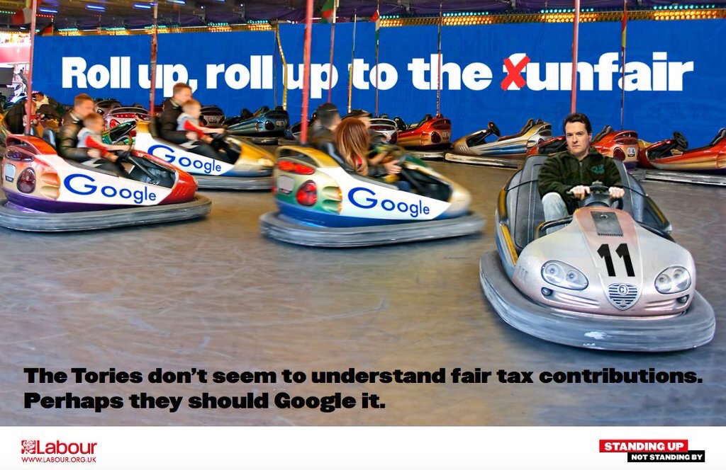 And why is Osborne in a dodgem car? What relevance does a funfair have to Google? The visuals don’t relate at all to the issue at hand. Aside from the fact that “unfair” rhymes with “funfair” – which is so tenuous that it makes the ad quite confusing.
