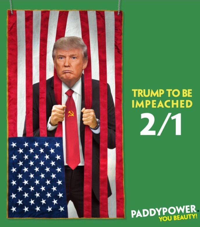 Paddy Power are running a full page ad featuring the odds of Donald Trump getting impeached.