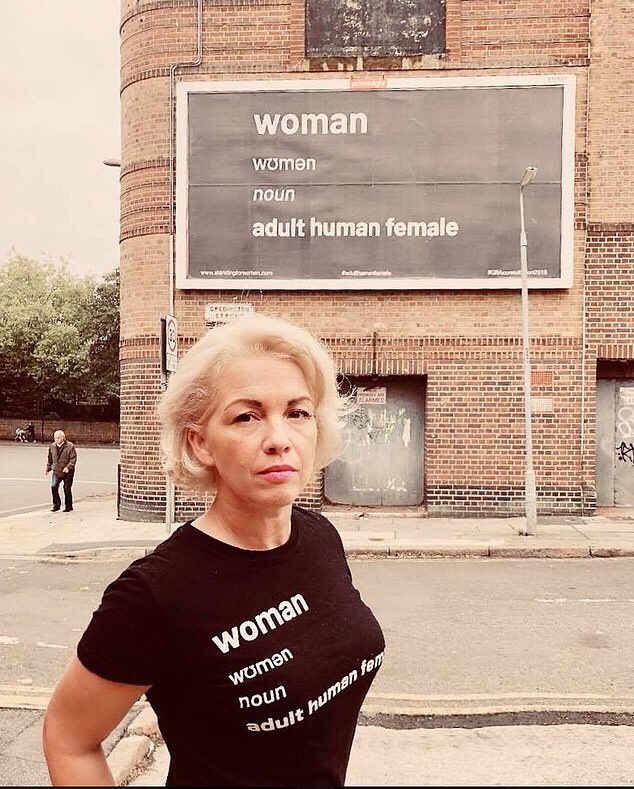 Pressure Group “Standing for Women” ran a poster quoting the Google Dictionary definition of the word “woman” on a billboard site in Liverpool during Labour Party Conference this week.