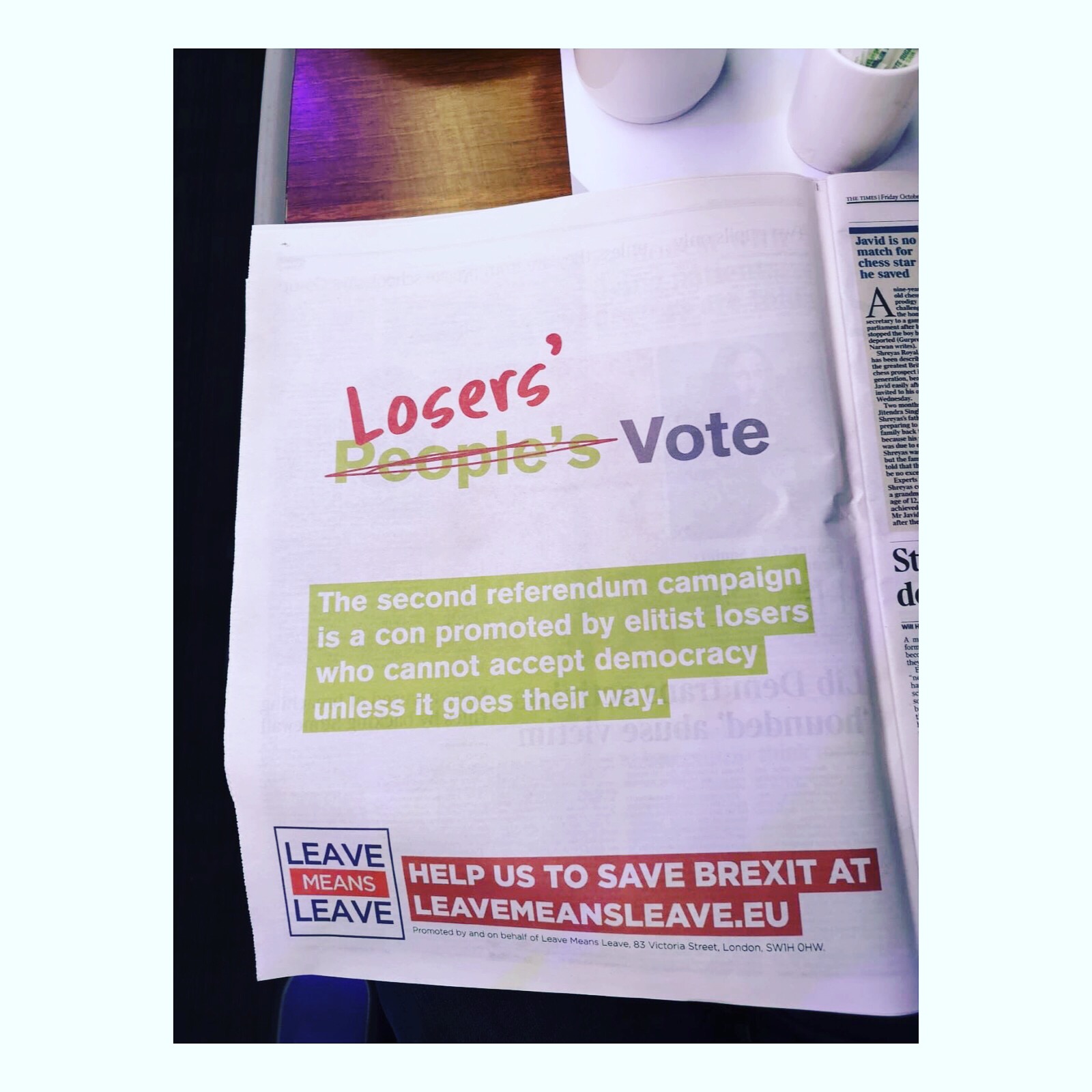 On the day before the second largest protest in British history – which called for a referendum on the terms of the Brexit deal – the hard Brexit group Leave Means Leave ran this childish rant of a press ad.