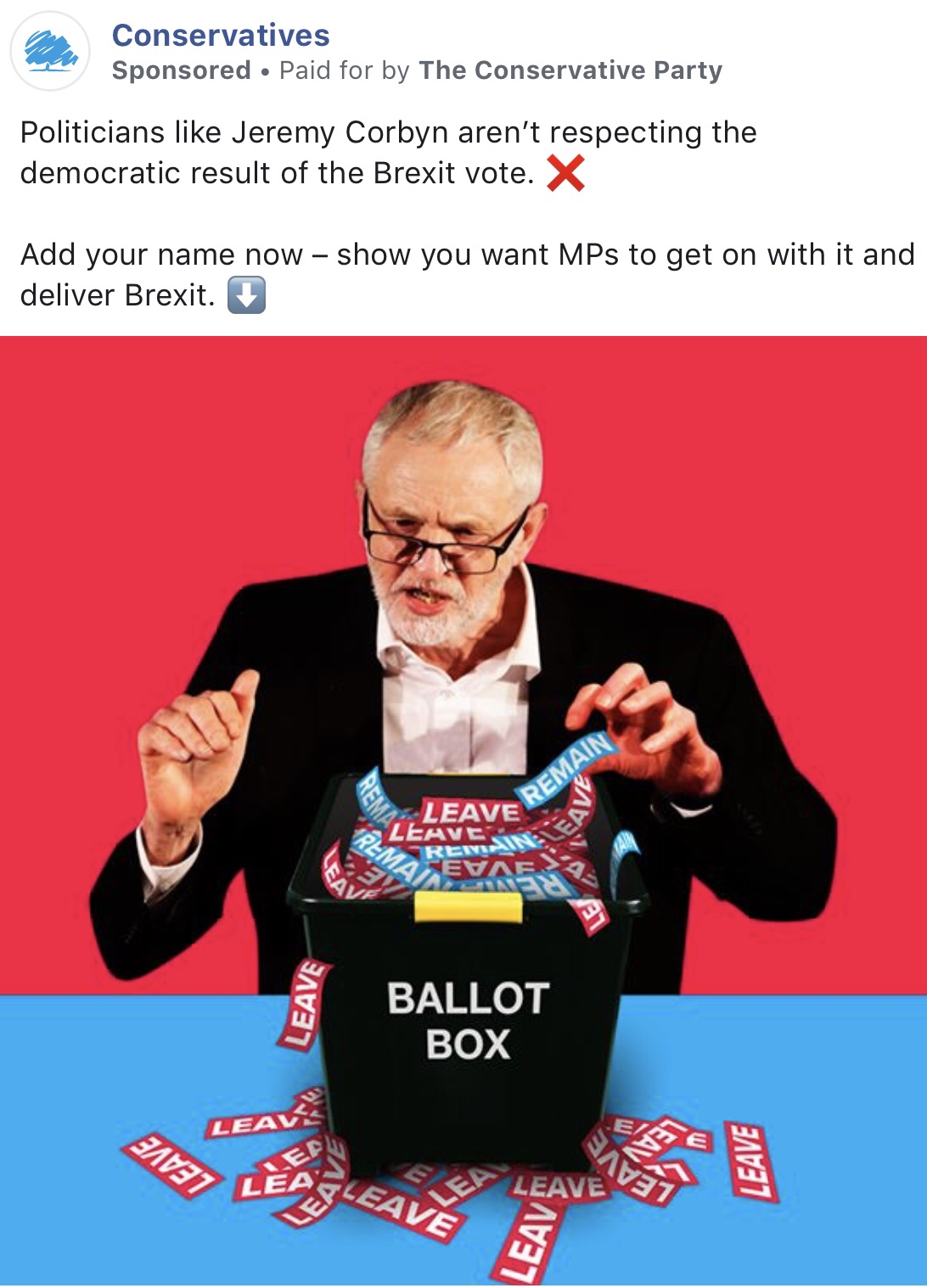 Conservatives are depicting Corbyn as ignoring the will of the people on Brexit in a new set of negative ads.