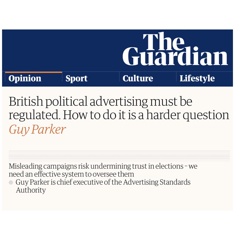 In today’s Guardian the CEO of the UK Advertising Standards Authority (ASA) announced his organisation’s support for the idea that “claims in political advertising should be regulated”.