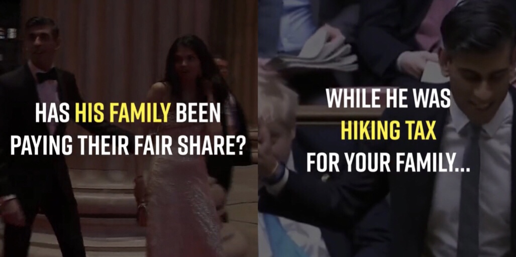 As can be seen in this video, Labour will now be able to draw a stark contrast between extra taxes on British families that are struggling financially and Sunak’s family who have avoided taxes whilst making vast sums of cash.