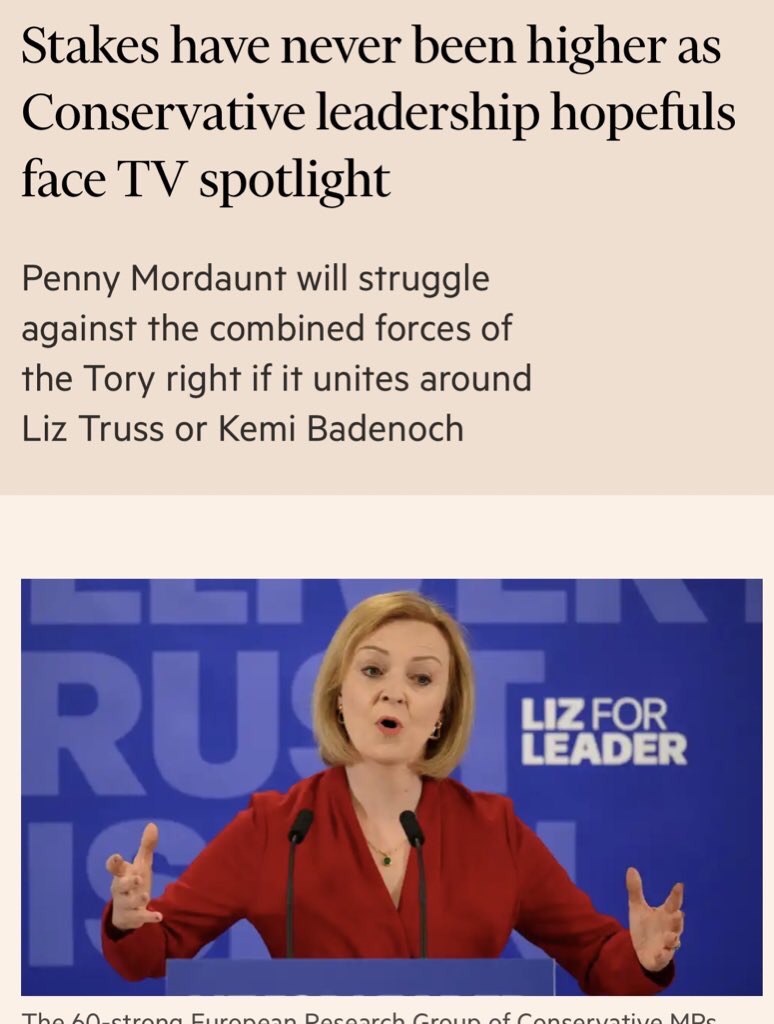 In having three separate launches – each fairly successful – Truss has managed to stay in the media narrative at a time when it could have easily left her behind thanks to the unexpected success of Penny Mordaunt and Kemi Badenoch.