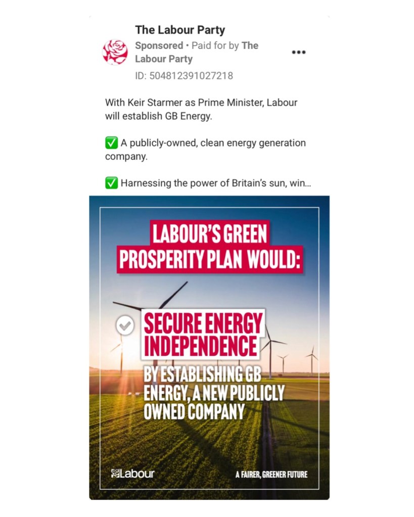 Labour released a new slogan in time for their party conference this year: “a fairer, greener future” and they’re using it their online advertising.