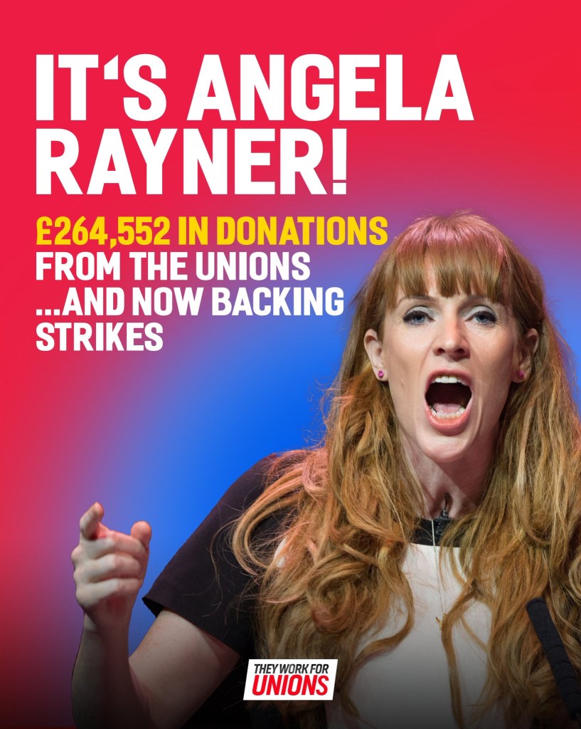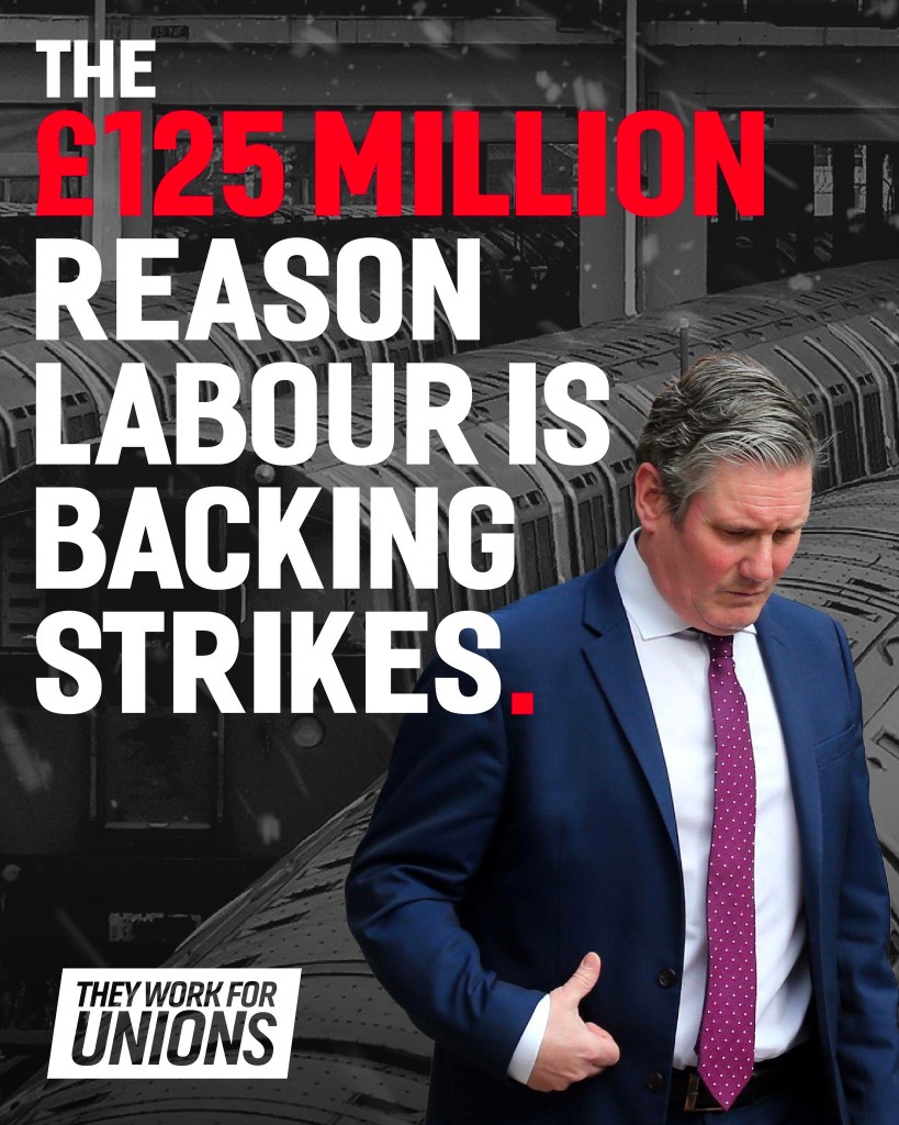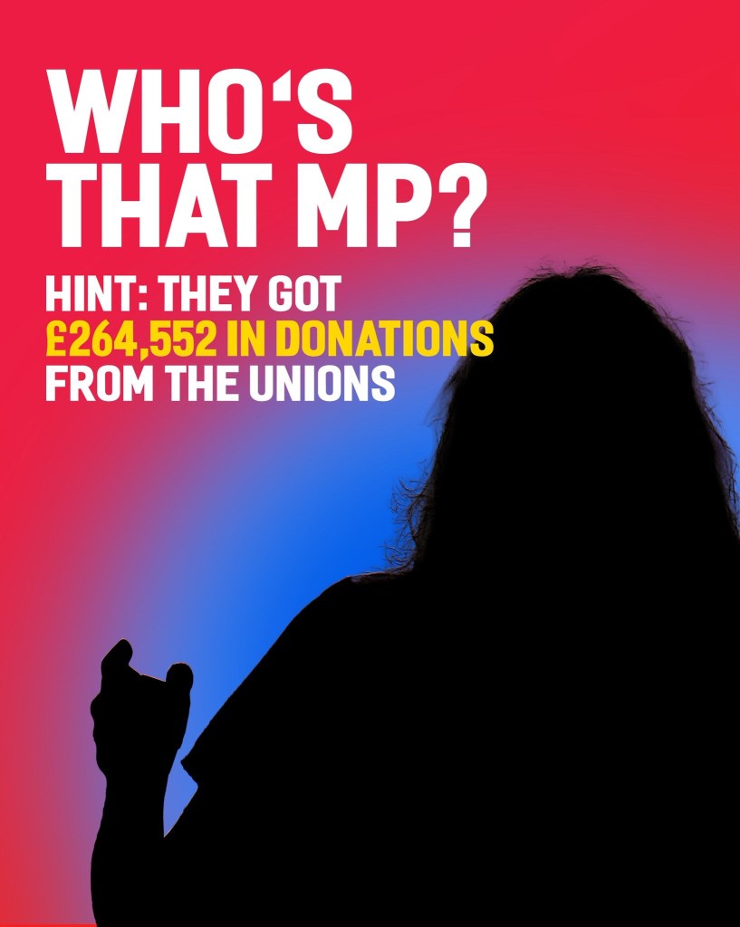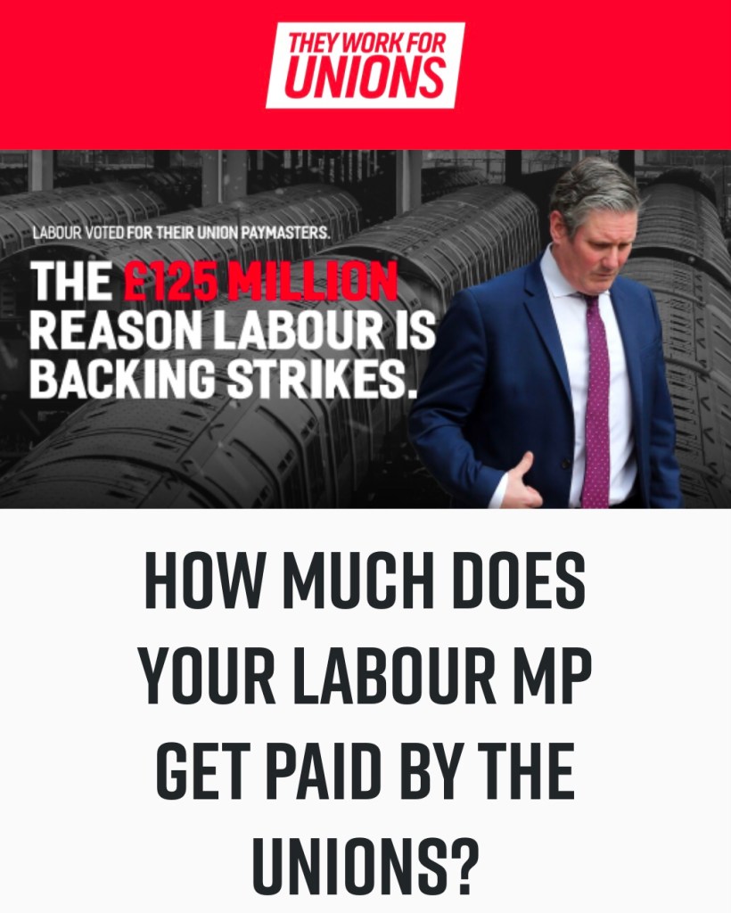 The campaign “they work for unions” – a pun on “they work for you” – highlights the amount of money Labour MPs have taken in donations from unions.