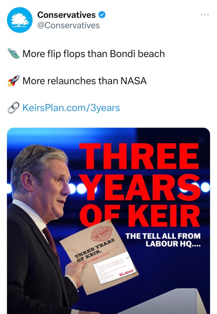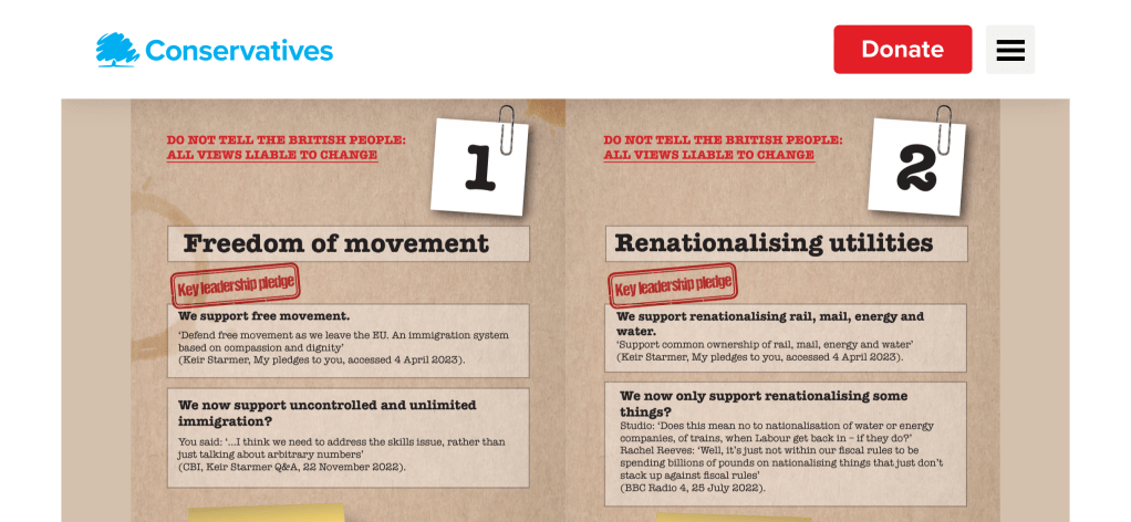 The Conservative Party have used the third anniversary of Keir Starmer’s leadership of the Labour Party to release a faux leaked Labour dossier which outlines 32 u-turns that Starmer has made.