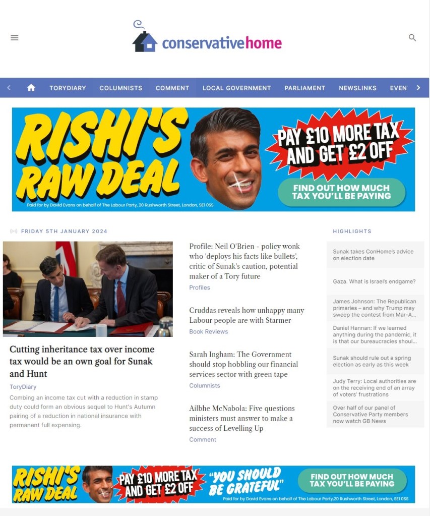 The Labour Party are running an impressive campaign – “Rishi’s Raw Deal” – which is designed to undermine Conservative efforts to position themselves as tax cutters.