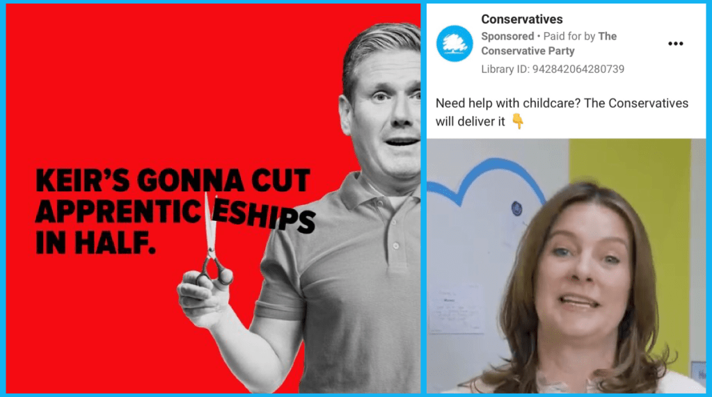 For example, there are ads which attack Keir Starmer for wanting to cut the number of apprenticeships. And there are ads promoting the Conservatives’ policy on free childcare.