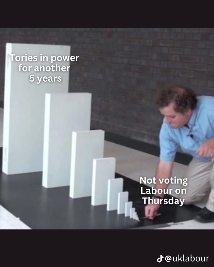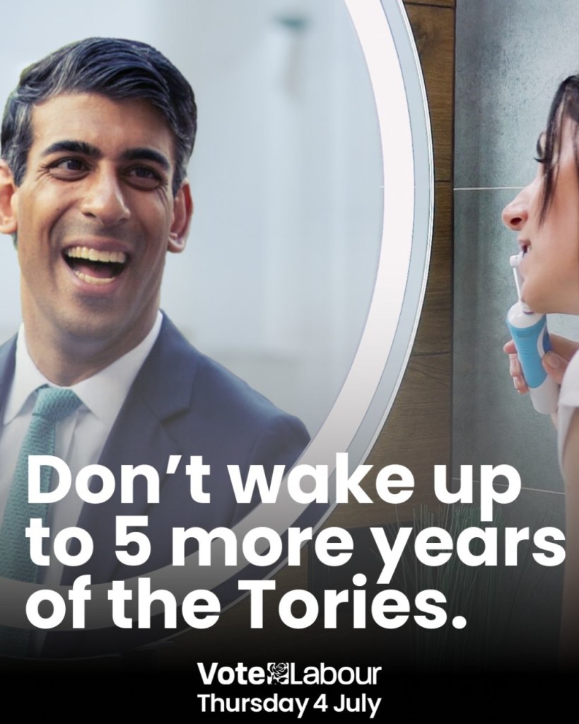 The core message is asking voters to imagine waking up the day after the election with the realisation that their inaction led to a Conservative victory.
