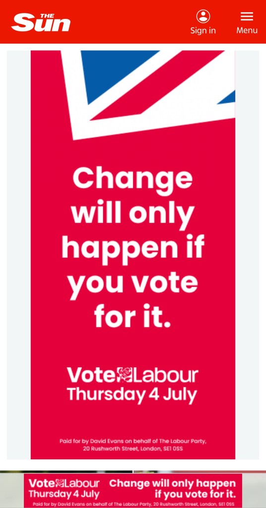 I collected lots of Labour adverts through the 2024 general election campaign and will share them below. They all caught my eye for one reason or another. I find these archives helpful to refer back to and so I hope some of you do too. There’s also a bunch of video ads available on my YouTube channel.