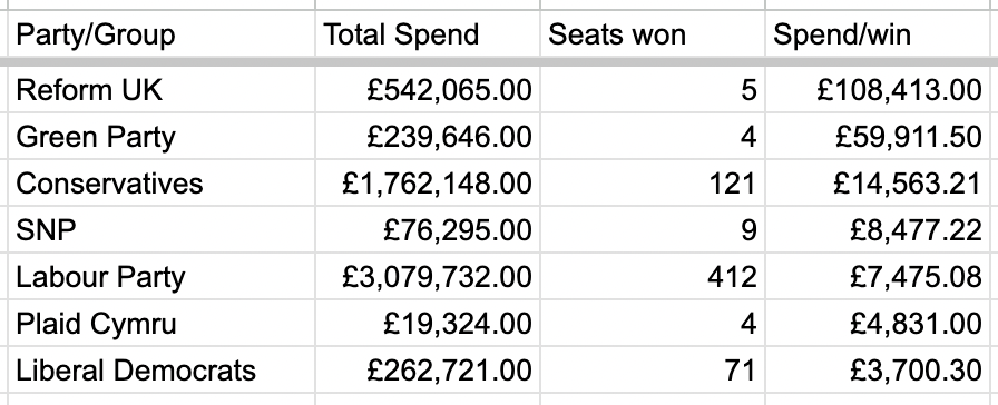 Labour media spend was much bigger than their opponents. According to Google’s data, Labour has spent more than £1.5M on ads on their platform since the May 22 election announcement. That compares to £115,000 from the Conservatives, around £92,000 for the Liberal Democrats and about £58,000 for Reform.
