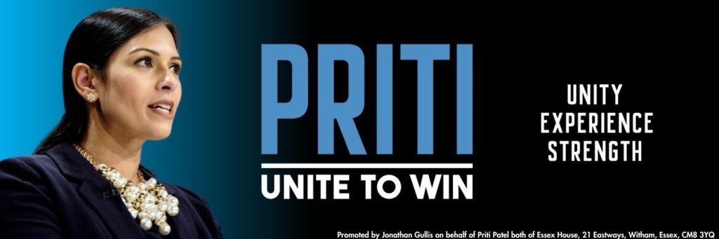 The three pillars of Priti Patel’s campaign which are called out in her key visual – unity, experience, strength – nod to each of Stark’s fundamentals.