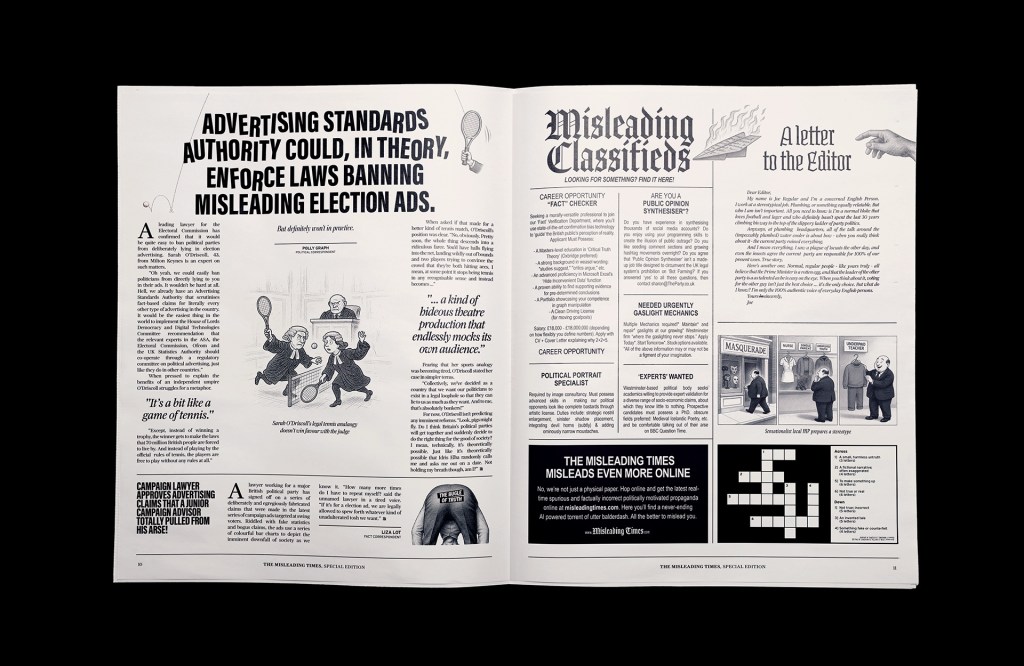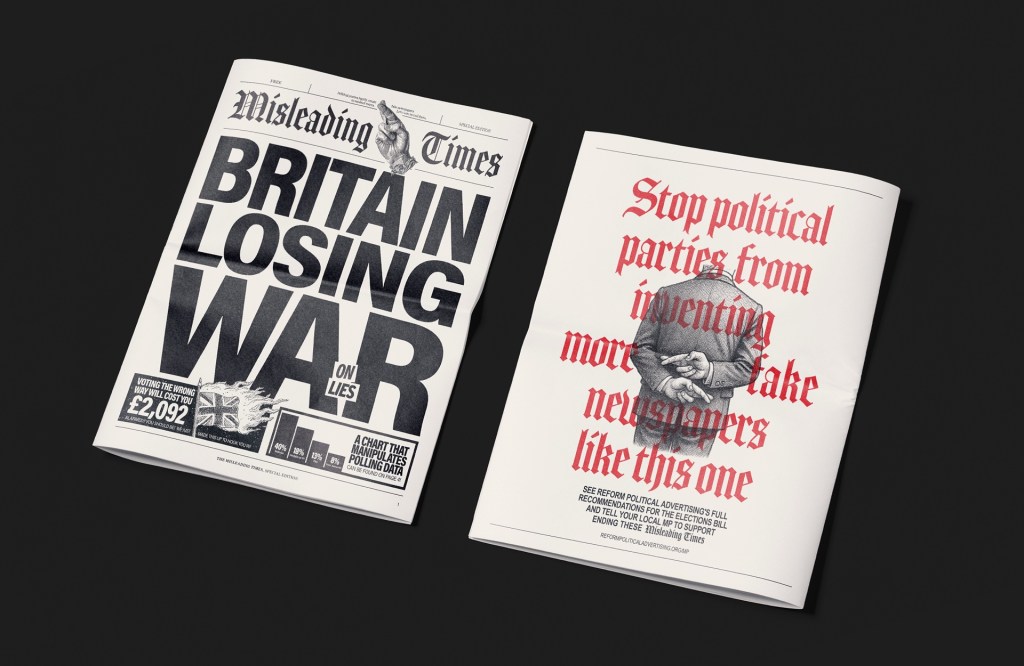 Reform Political Advertising, a pressure group, have launched a satirical campaign called “The Misleading Times,” a 100% fake newspaper delivered straight to MPs in Parliament.