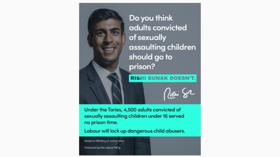Labour attack ad on Sunak re: child sexual assault backfires horribly